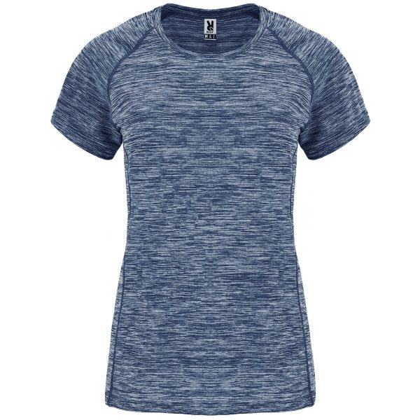 T-shirt tecnica da donna in poliestere con manica ranglan. Girocollo. Tessuto comodo e facilmente adattabile al corpo.