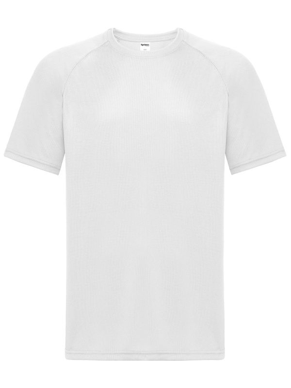 100% poliestere microforato. Tshirt maniche corte raglan, cuciture flatlock, tessuto traspirante, struttura con cuciture laterali. COLORE: BIANCO